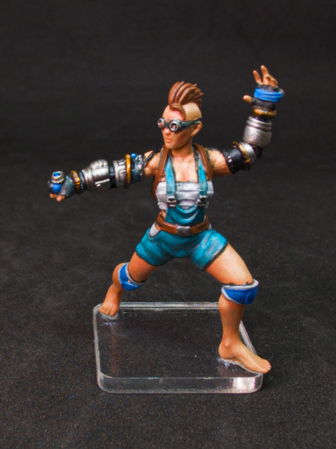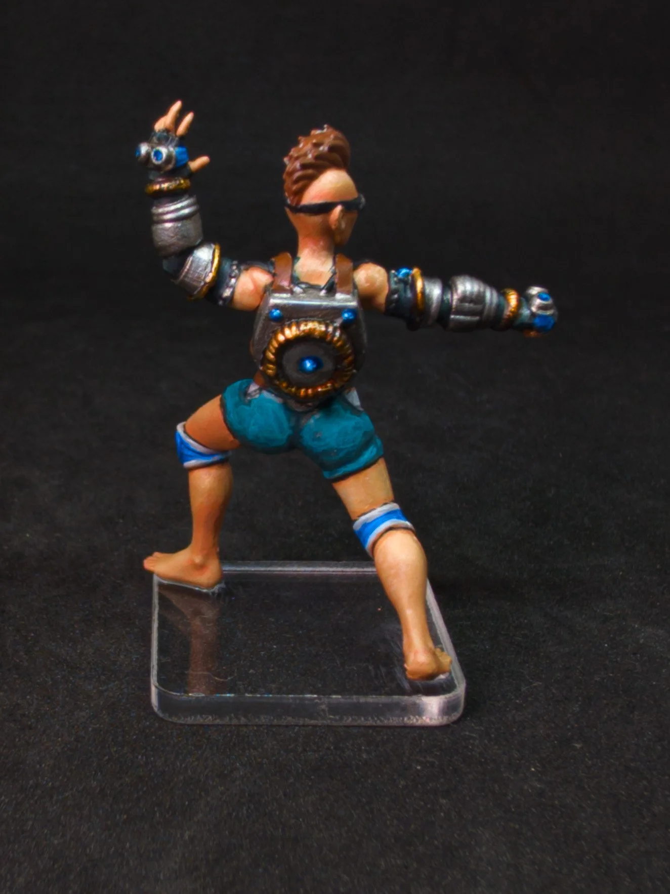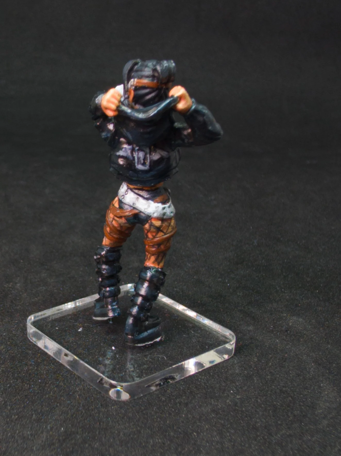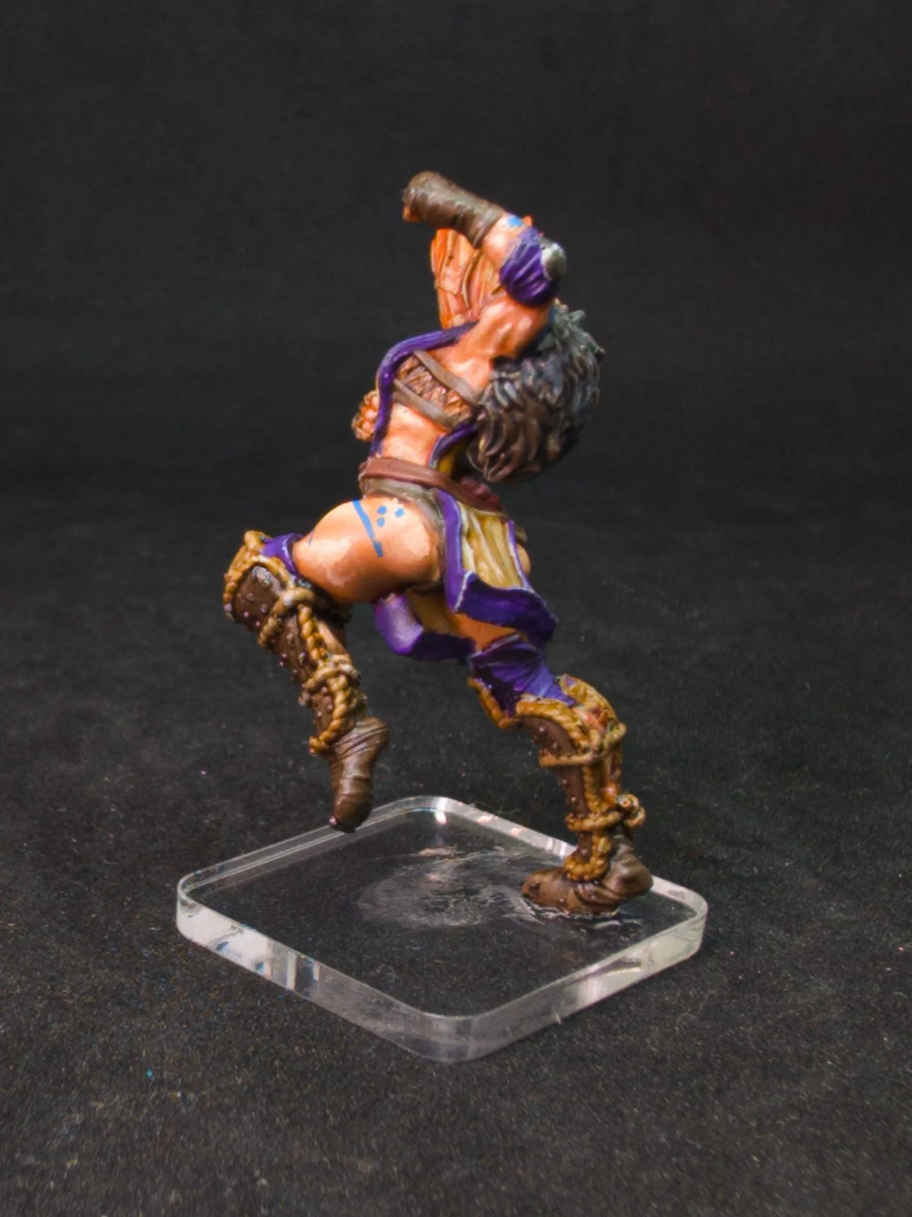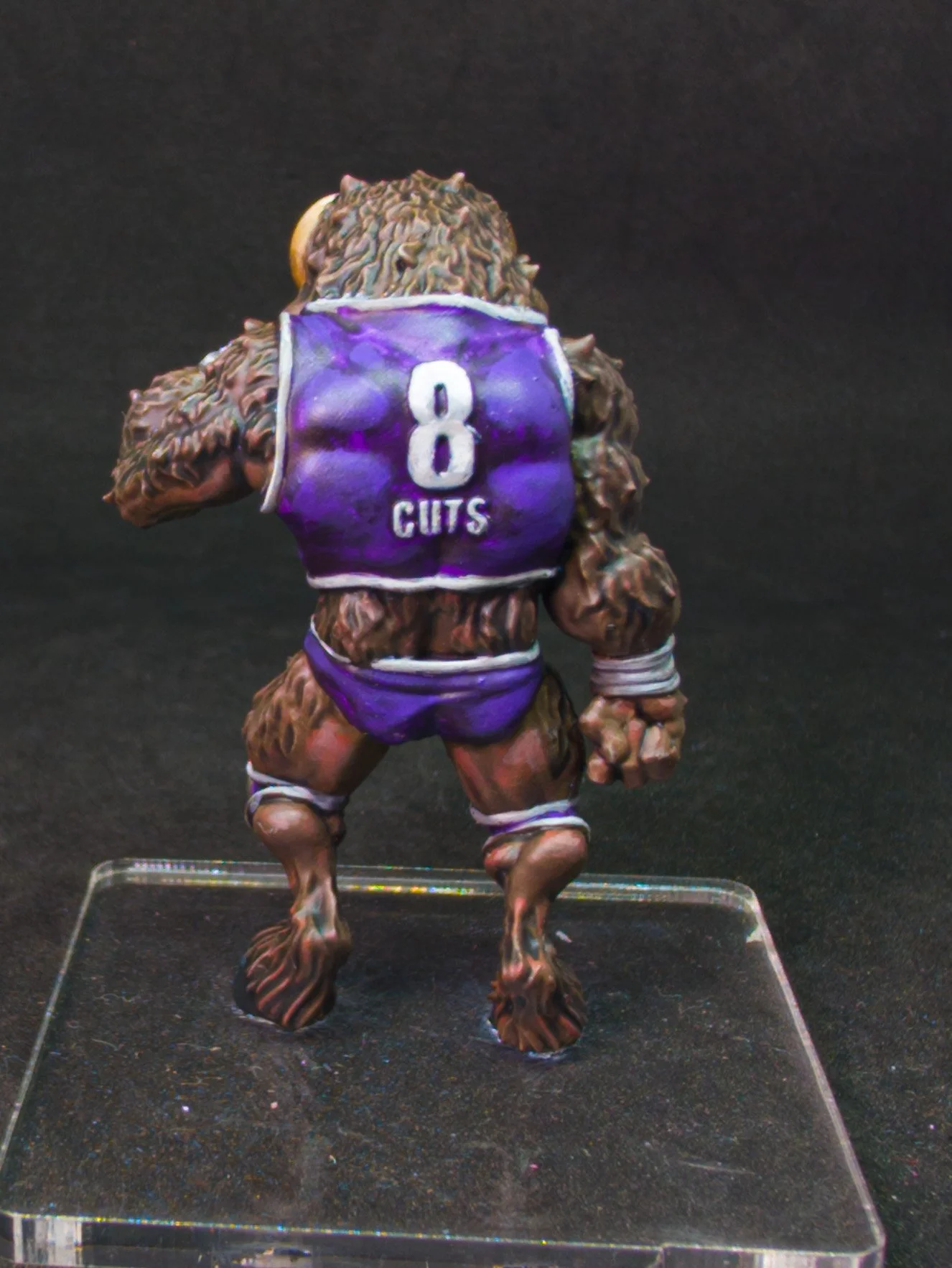 These Superstars are part of Pieces of D8, and have very different styles. Ikatere is a Polynesian God inspired model, similar to Maui from Moana. He is the model I’ve painted the most tattoos on, and added a bunch of Easter Eggs to. The tattoos on his body are based on the ones Maui has, depicting the stories of how he created the world for the people, but the tattoos on his arms depict the most important parts of Rumbleslam’s history, including Ikatere’s first time winning the Championsip belt and when he faced off against Gun in RumbleMania 18. I enjoyed painting the fish tail on this guy using metallics and stippling on different colours, Purple, Blue and Red