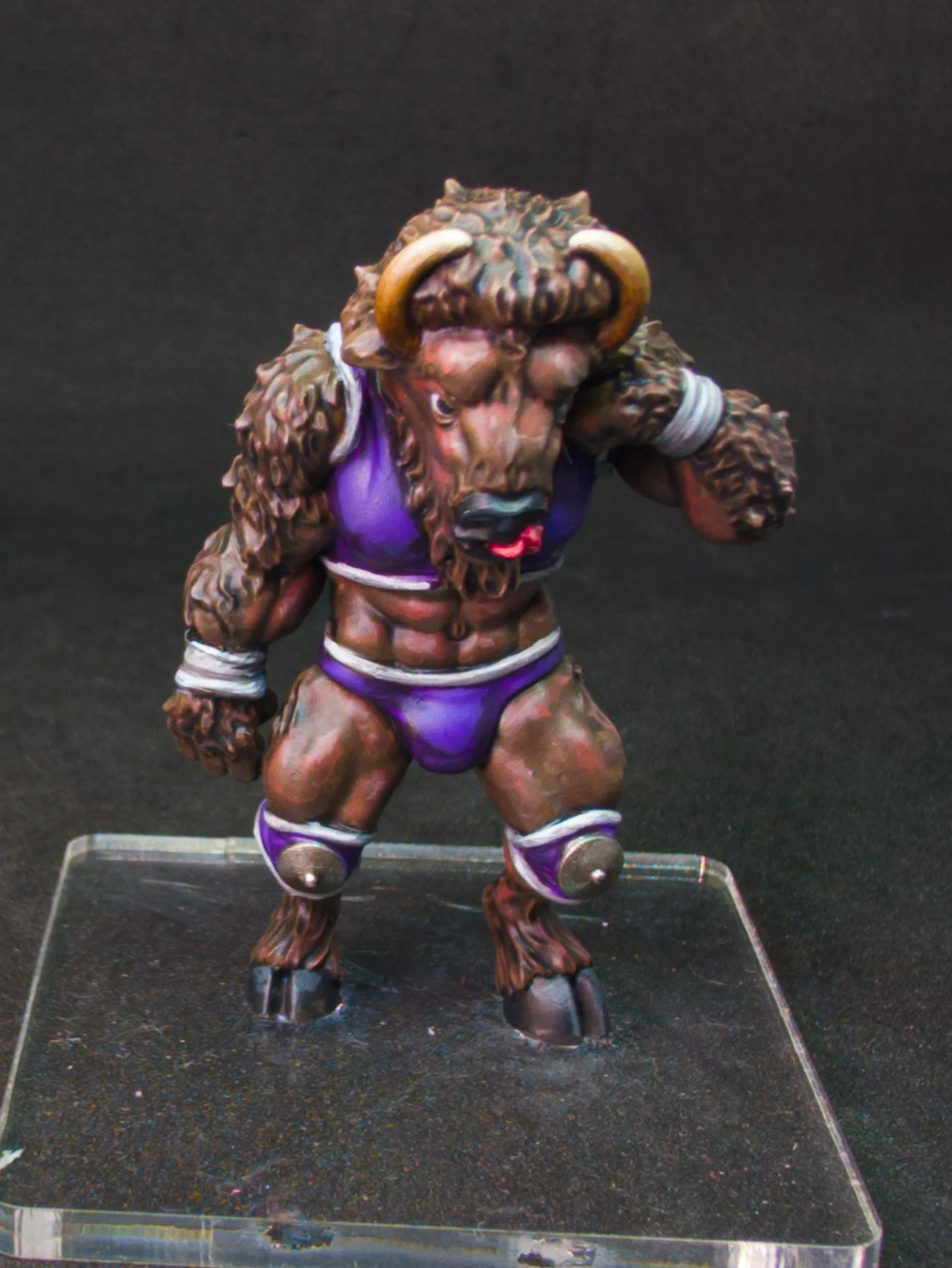 These are a nice set of models who fit into The Feral Den alongside the Raging Beasts. We get a couple more great looking Barbarians in the form of the Berserker and Brewer, a Satyr who gives more control over Frenzied wrestlers, and can cause enemy wrestlers to suffer from it, which could change the tide of a round. The Heater Ibex is a beast coming off of the ropes or turnbuckle, very dextrous, and if he gets his Crowd Pleaser off, gives you more control of your other Crowd Pleasers and Dirty moves, changing Blanks to Boo or Cheer results on the Crowd Dice. Finally, the Hoss Bison lives up to his name as a big guy. Not only can he not receive Knockdown counters (remember, the Passive Skill is ended if he is KO’d) but Beatdown results have their required score increased by 2, which is massive!