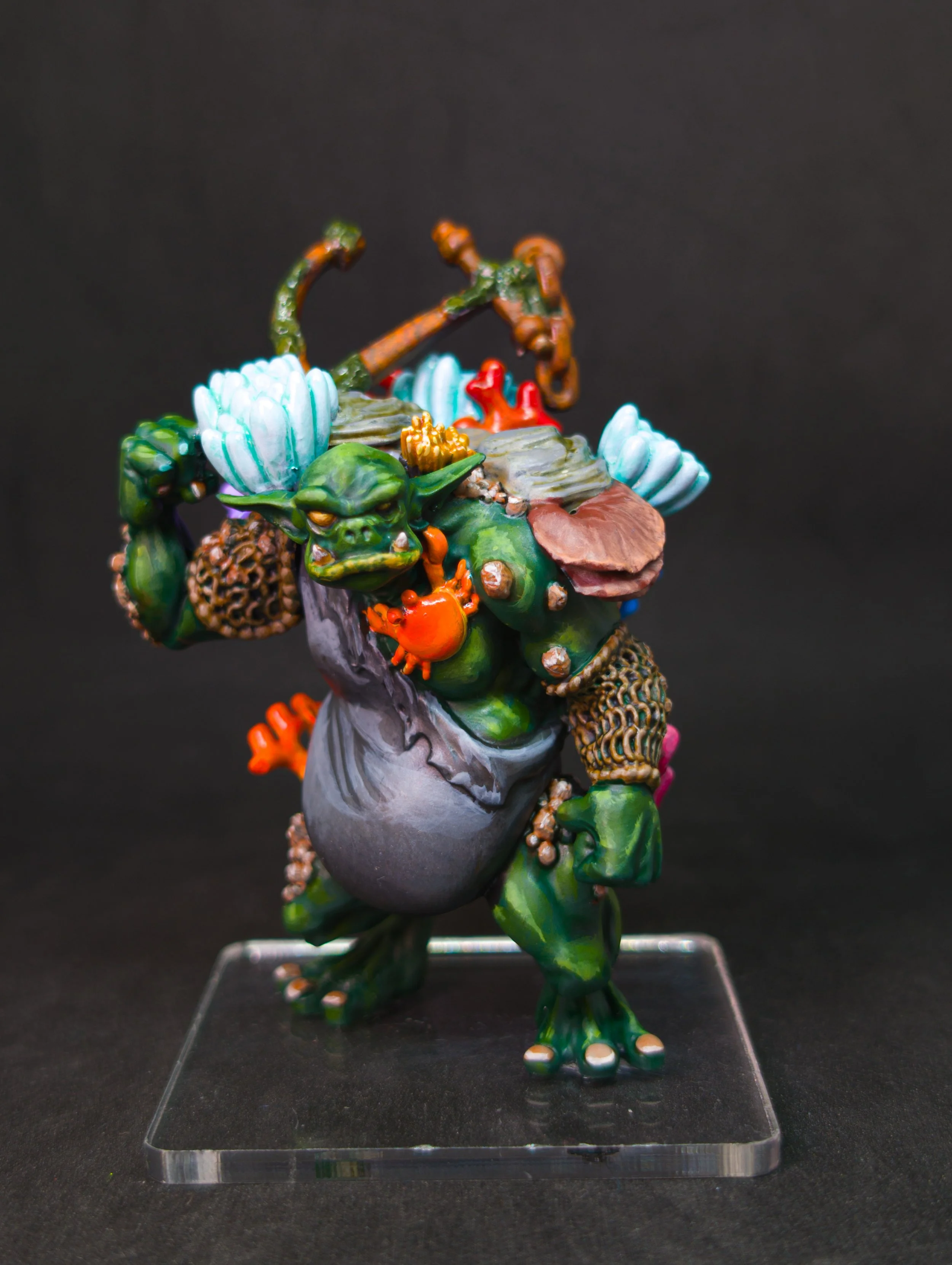 Reefback is a walking Conservation Area, home to all kinds of sea plants and creatures! I had a lot of fun painting him, having all of his corral being different colours to really make him pop.